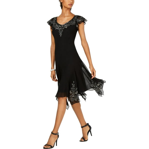 J Kara V Neck Handkerchief Hem Sparkle Dress Dresses Women Macy S Sparkle Dress Black Sparkle Dress Black Sparkly Dress