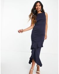 True Violet Bandeau Midi Bodycon Dress With Frill Detail In Navy Asos Bodycon Dress Midi Dress Bodycon Dresses